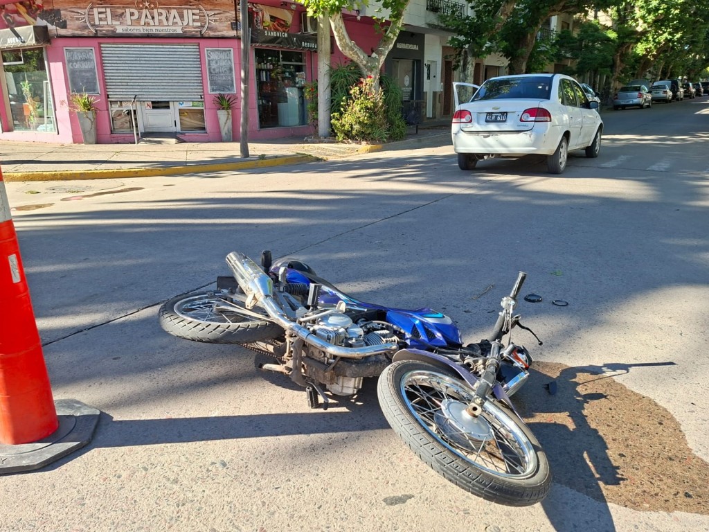 Sucedió un impacto entre un vehículo y una moto, el vehículo conducido por un masculino, es un Chevrolet patente KLR-610, color blanco, que circulaba por Arenales, mano a la Comisaría.