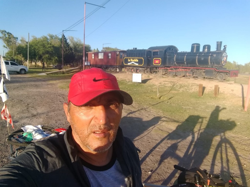 Hace 16 días partió de Bolívar con el objetivo de cumplir la promesa hecha a su padre de llegas a las Islas Malvinas. En un breve mensaje cuenta que lo ayudan y colaboran en cada ciudad que arriba, y partirá desde puerto Madryn rumbo a Trelew este domingo.-