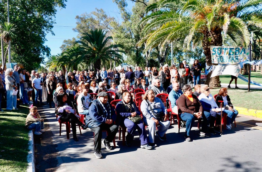 Como parte del acto, se colocó una ofrenda floral en el Monolito de la Memoria. Además, el intendente, junto a la directora de Políticas de Género y Derechos Humanos del Municipio, Celina Manghi, entregó reconocimientos a Tamara Madueña y a Duilio Lanzoni, destacado dramaturgo, director y actor bolivarense recientemente fallecido. El reconocimiento fue recibido por sus compañeros y compañeras del grupo de teatro Artecón.